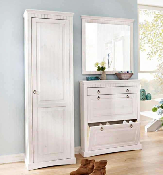Мебель рекомендуется сразу выбирать максимально закрытую. Чтобы различная одежда, обувь и аксессуары не портили всю гармонию интерьера. Идеально для этого подойдут шкафы-купе, специальные обувные шкафы и тумбы с достаточным количеством ящичков. Такую мебель для прихожей можно купить готовой или же сделать уникальный дизайн.