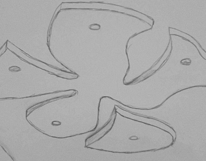 При создании чертежа следует расположить листы на ровной поверхности и разметить основные детали. Наибольшей сложностью является создание ровных кругов большого диаметра: если циркуль слишком маленький, нарисовать идеально ровную фигуру можно, вставив в центр гвоздик с привязанной ниткой, на другом конце которой крепится карандаш. Длина нитки должна соответствовать радиусу будущего круга, и она позволяет нарисовать правильную геометрическую фигуру. После создания чертежа требуется вырезать элементы и провести монтаж.