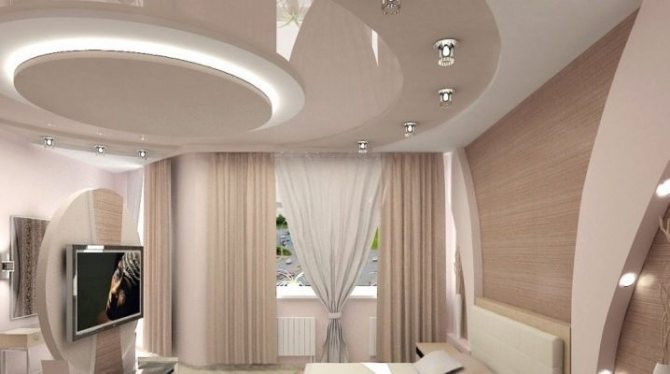Гипсокартон- материал, который может принимать различные геометрические формы, что позволяет создавать изящные и неповторимы конструкции потолков.