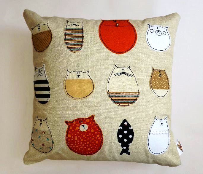 Если планируется смена наволочки, предусматривается застежка пуговицами или молнией. Самое главное — это оригинально оформить лицевую сторону подушки. При изготовлении подушки можно оставить края ткани наружу и сделать из них бахрому, а сверху украсить материалами: