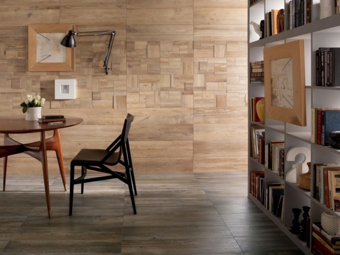 - Возможность создать оригинальный интерьер, придав «изюминку» помещению. Даже в самой маленькой комнате можно создать шедевр, используя небольшие полотна – картинки под дерево.