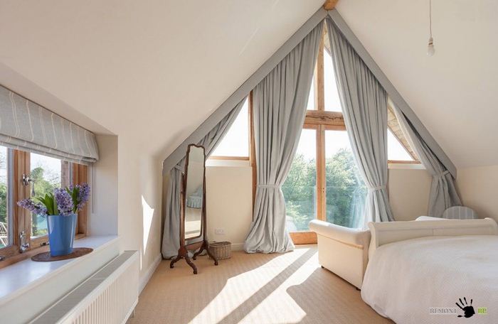 Чердачные и мансардные пространства – непростое место для организации жилых комнат. Конструкция крыши, предполагающая окна в изначальном варианте встречается нечасто. Поэтому лучше на этапе планировки здания решить будете ли вы использовать мансарду или чердак и какие именно помещения хотите там разместить, от этого будет зависеть количество и масштабы оконных проемов.