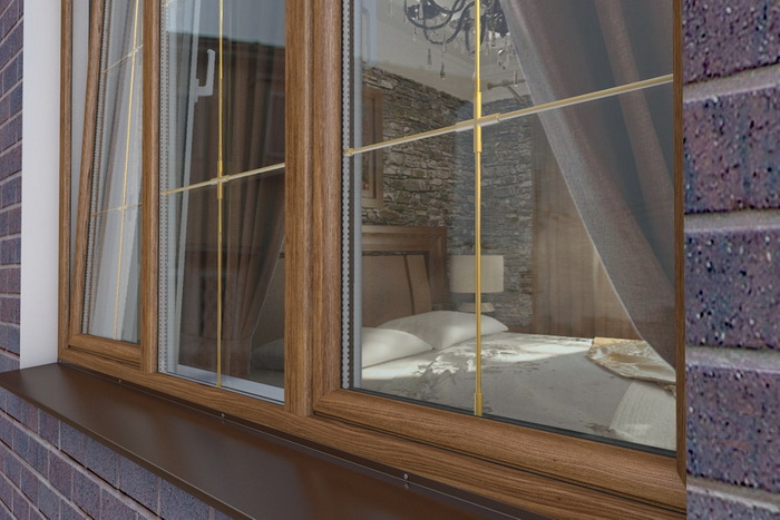 Важно! Раскладка для пластиковых окон изготавливается в разных цветах, например, под золото, бронзу, серебро. Благодаря этому можно максимально красиво украсить фасад частных домов.
