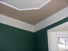 - Потолочный плинтус можно покрасить до его монтажа. После высыхания краски галтель устанавливается, а стыки корректируются.