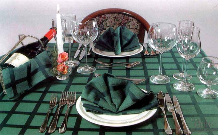 Начнем со скатерти — она должна быть идеально выглажена и соответствовать характеру мероприятия. Так, для званого обеда подойдут модели нейтральных оттенков, а для воскресного завтра в кругу семьи нет ничего лучше яркой скатерти и салфеток с необычными рисунками. Средняя длина данного изделия составляет 25 см. Этот показатель далеко не случайный – излишне большой спуск скатерти будет смотреться неаккуратно, а маленький выглядит несуразно.