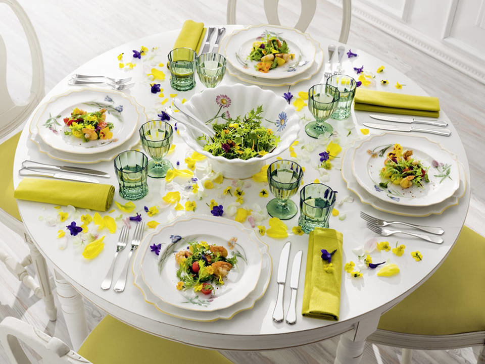 «Важный элемент сервировки — вазы с цветами и подсвечники. С их помощью вы подчеркнете характер сервировки, добавите декоративности. Главное — не забывать о пропорциях. Эти предметы не должны доминировать на столе и не должны мешать общению. Если стол большой, это может быть массивная ваза с букетом, если стол компактный, можно поставить несколько маленьких вазочек для одного цветка. Тех же правил необходимо придерживаться при выборе подсвечников — либо это массивный подсвечник на несколько свечей, либо пара маленьких».