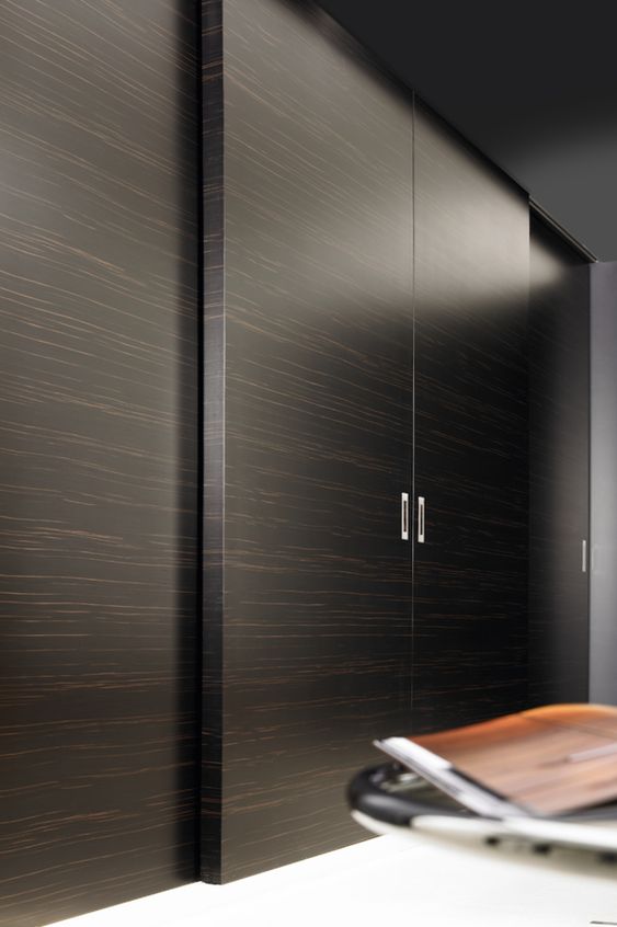 При этом шкаф не должен выглядеть как вагонка, которой обивают балконы. Поэтому ни в коем случае не выбирайте фасад, якобы состоящий из мелких досок. Чем крупнее будут составные части, тем изысканее он будет выглядет. Возьмите на заметку интересный дизайнерский прием: когда рисунок с одной дверцы переходит на другую естественным образом.