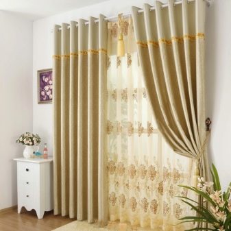 Шторы на кольцах-люверсах с тюлем следует подбирать, учитывая дизайн помещения. Структура и цвет ткани должны сочетаться между собой, декоративными элементами и общим стилем помещения.