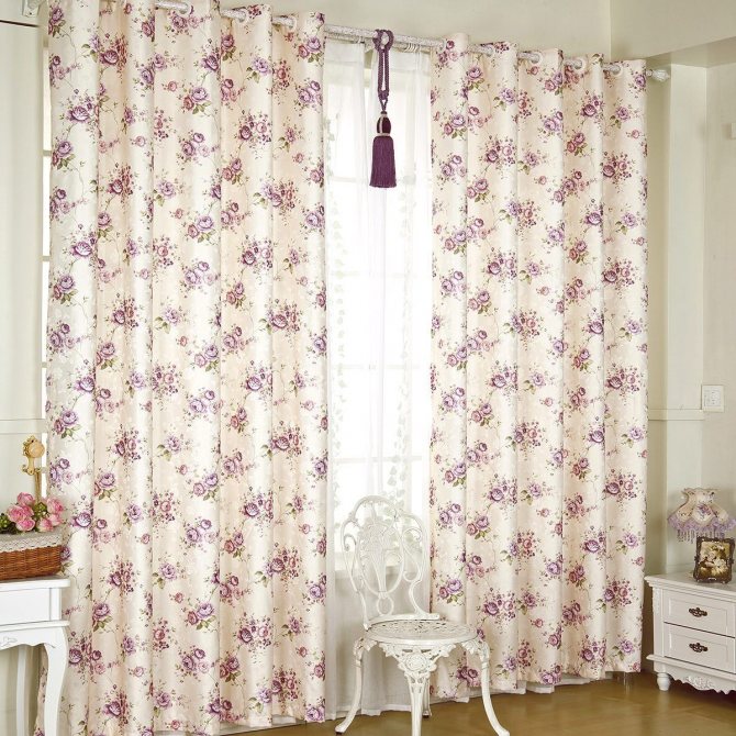- Дизайнерское решение. Занавески обязательно должны адаптироваться под направление стиля в комнате. Например, для прованса будут незаменимы модели с цветочным принтом, а для шеби-шик или модерн подойдут виды полотен в клетку или полоску.