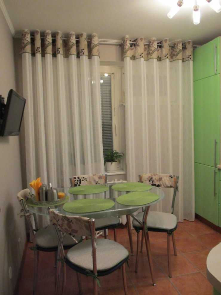 Длина портьер определяется сугубо индивидуально и зависит от назначения комнаты. Шторы на кухню на люверсах не должны доходить до самого пола. Оптимальная длина до подоконника или даже до середины окна.