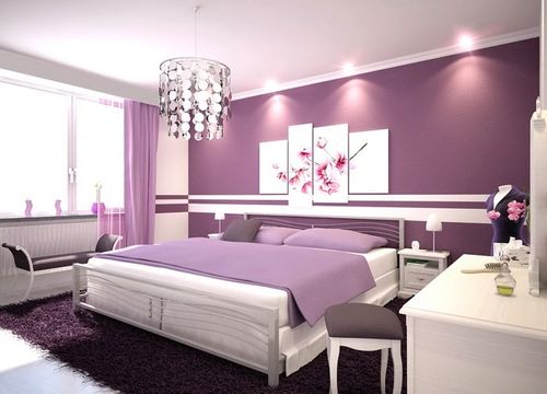 - Когда в комнате окна выходят на северную сторону, вследствие чего в помещение проникает достаточно мало света, необходимо избегать использования слишком темных или холодных оттенков фиолетового. Лучше предпочесть теплые, светлые, так как они привнесут больше комфорта.