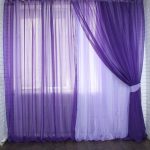 Интерьер востока позволяет сочетать легкие, воздушные шторы фиолетового цвета с объемными элементами декора. Например, элегантной тесьмой, ламбрекенами или бахромой. Стиль хай-тек предполагает однотонного цвета портьеры насыщенных оттенков.